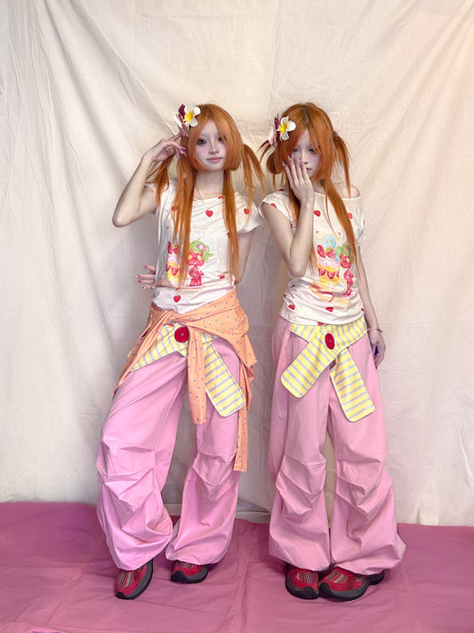 YJM with biubiu Strawberry Slim Fit T-Shirt – Y2K Harajuku Kawaii Style Tee