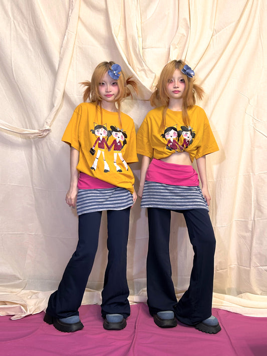 YJM with biubiu Sweetheart Pants | Yellow Splice Bow Loose Long Pants