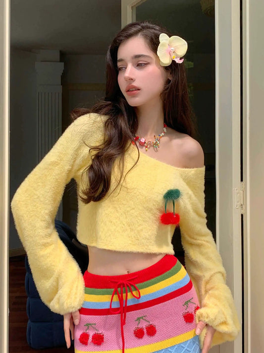 YZZI HE Yellow Sweater Colors Skirt