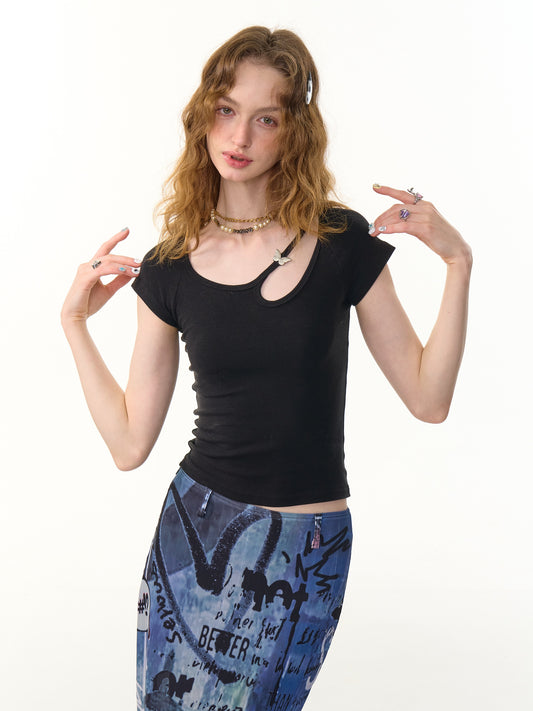ziziFei - Girly Slim Fit Solid Color U-Neck Top