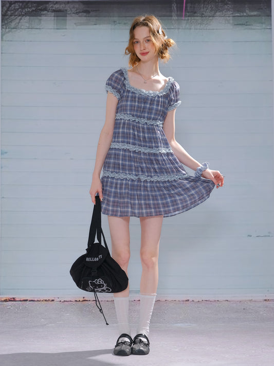 ziziFei - Girly Purple Plaid Square Neck Dress