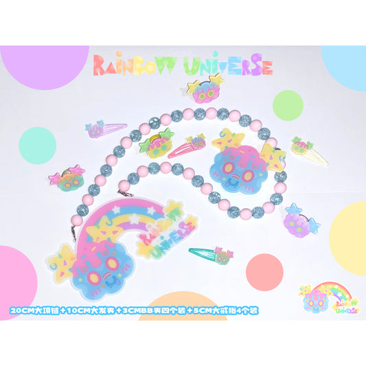 Rainbow Universe RUX - Decora Kei Jewelry Set Necklace Bracelet Ring Clips