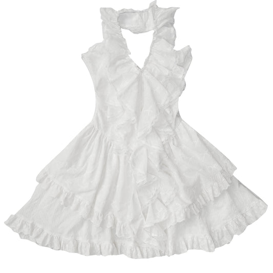 daytoday everyday institute – Fairycore Halter Mini Dress with Lace & Floral Gradient