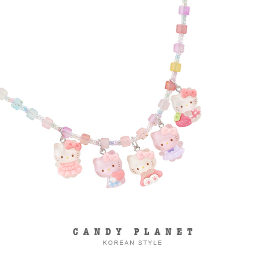 Candy Planet - Decora Kei Kitty Cartoon Pendant Beaded Necklace