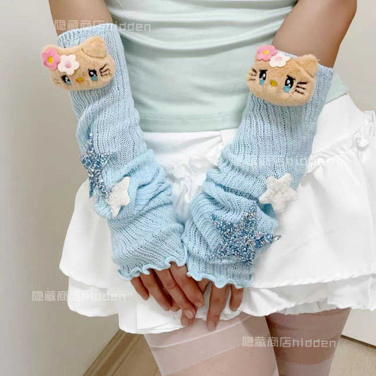Hidden – Decora Kei Cute Sleeves with Stars Blue Versatile Accessories