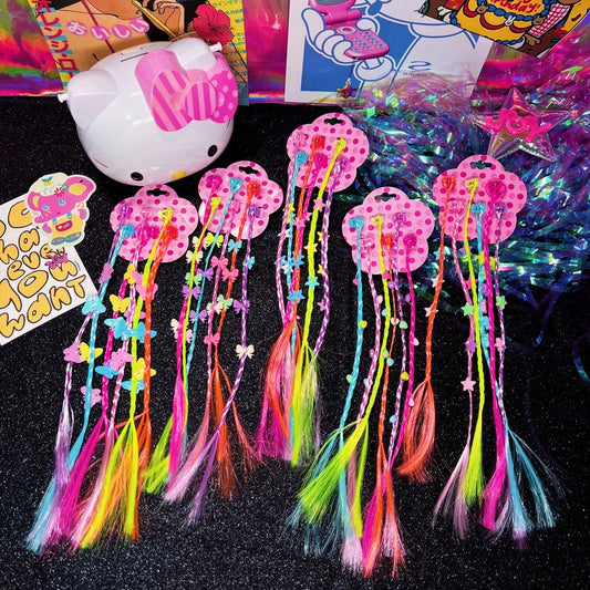 Harajuku Decora Vkei Flase Hair Dopamine Rainbow Hair Clip – Colorful Synthetic Braided Extension