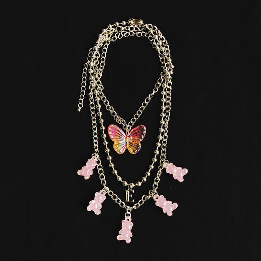 StrangeLab 3-Piece Necklace Set | Candy Bear Y2K Necklace | Iridescent Butterfly Letter Necklace
