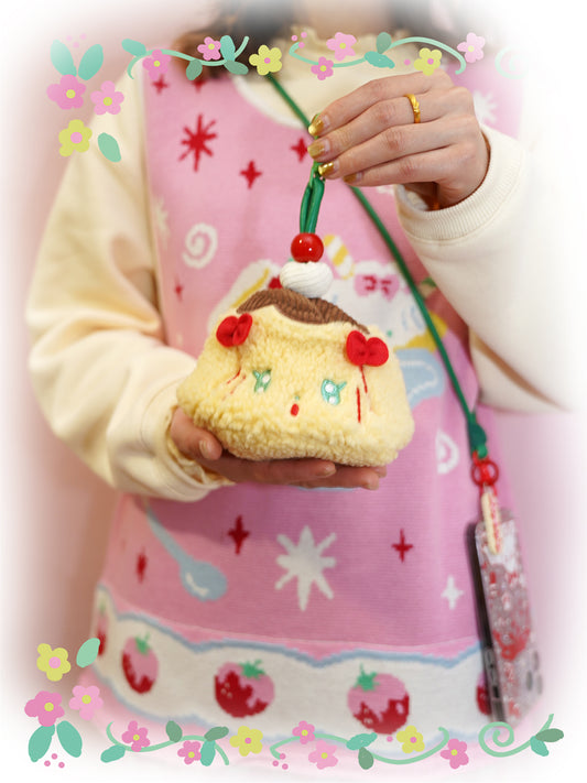 shishihshop Decora Kei Plush Pudding Pouch | Zipper Key Lip Balm Coin Bag