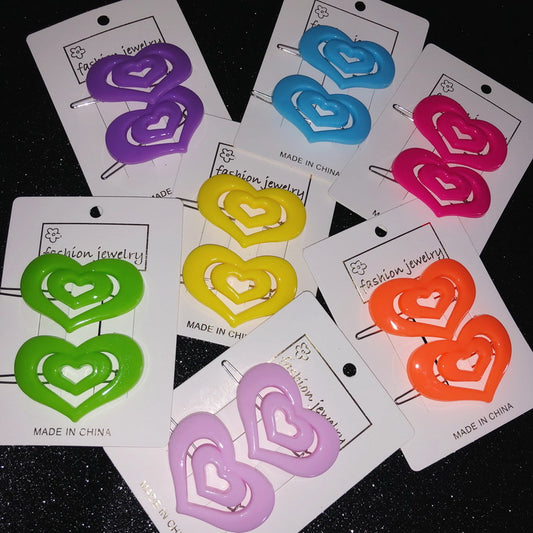 StrangeLab Decora Hair Clips | Retro Candy Color Heart Clips | Cool Girl Party Bang Clips