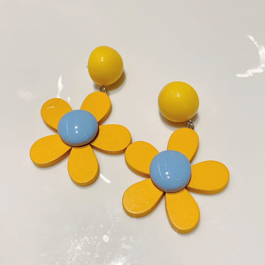 Exaggerated Floral Earrings Summer Daisy Clip-on Earrings