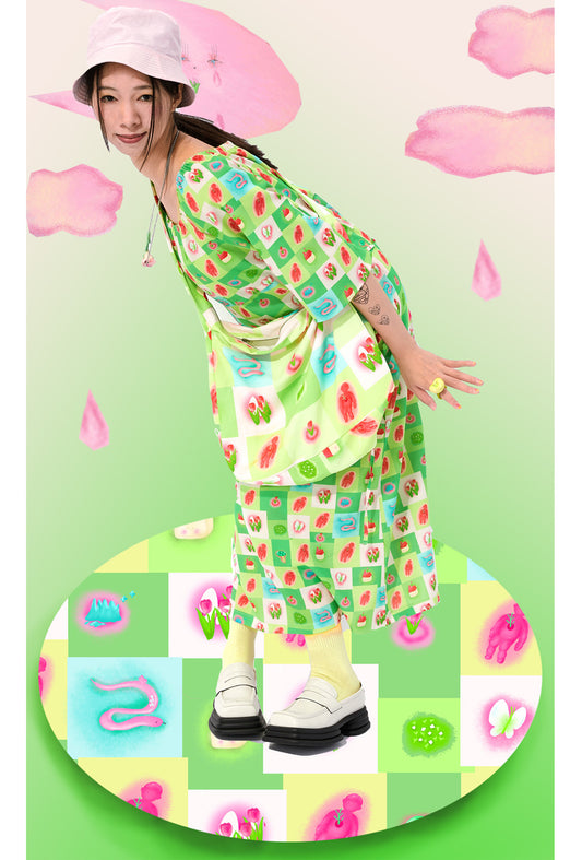 Harajuku Skirt Green A-line Skirt Hand-painted Skirt Midi Skirt