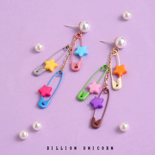 Pink Unicorn Decora Dopamine Pin Star Earrings