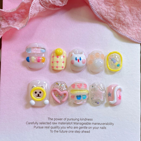PUPPY Cute Kitten Handmade Wearable Nail Set Summer Fresh Nails