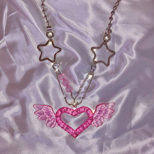 StrangeLab Neon Necklace | Sparkling Pin Necklace | Heart Wings Choker