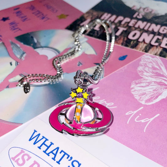 Harajuku Necklace Yaya Saturn Necklace – Silver K-Gold Plated Alloy & Glass Orb