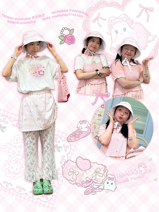 shishihshop Decora Kei Pink Sun Hat | Sweet Girl Lace Ribbon Wide-Brim UV Cap