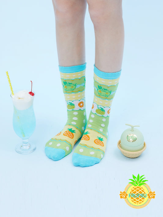 Frufru Cute Hami Melon Illustration Cotton Socks | Kawaii Fruit Print Ankle Socks
