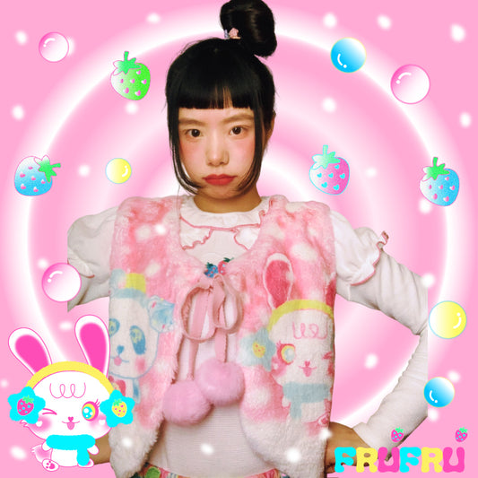 frufru Cartoon Pink Vest | Bunny Heart Plush Tie Vest