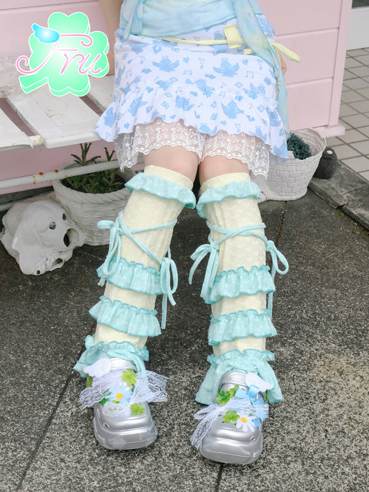 frufru Decora Kei Leg Covers | Green Lace Leg Warmers | Sweet Girl Summer Sock Sleeves