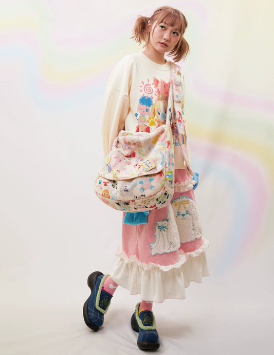 frufru Decora Kei Bag | Rose Red Cartoon Print Bag | PU Shoulder & Crossbody Bag