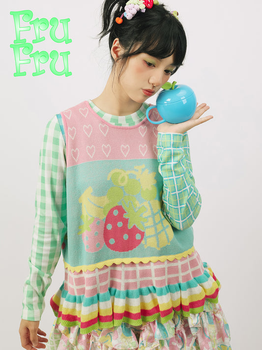 frufru Harajuku Fruit Knit Vest | Reversible Pink & Green Cotton Top