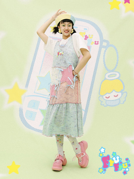 frufru Knitted Star Dress | Patchwork Loose Sweet Vest Dress