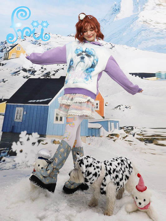 frufru Hoodie with Dog Print | Harajuku Loose Fit Colorblock Pullover