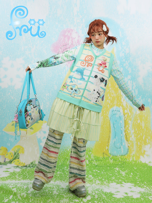 frufru Snow Farm Vest Dress | Harajuku Patchwork Knit Dress | Green Sleeveless Jumper
