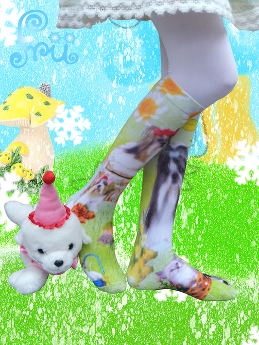 frufru Winter Dog Print Socks | Versatile Green Cute Mid-Calf Socks