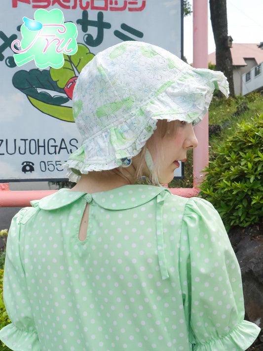 frufru Summer White Lace Hat | Cute Sun Protection Bucket Hat | Reversible Hat