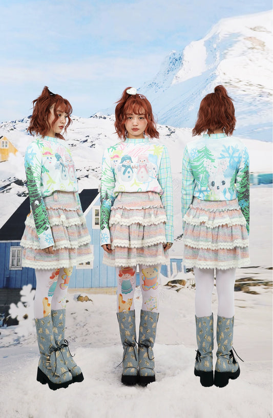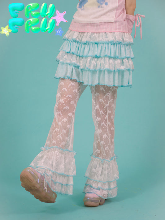 FruFru Summer Decora Skirt | Lace Blue Cake Skirt | Puffy Tulle Skirt