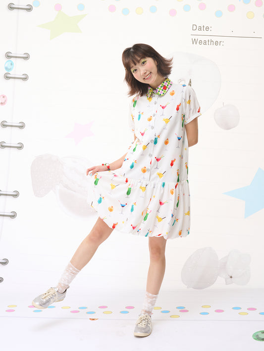 FRUITS Bubble Drink Summer Dress | Original Soda Shirt-Collar Dress