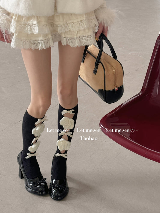 LET ME SEE - Lace Bow Camellia Mid-Calf Socks
