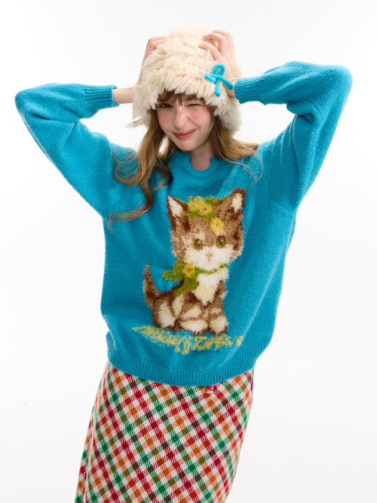 ziziFei – Girly Kei Blue Cat Knit Sweater