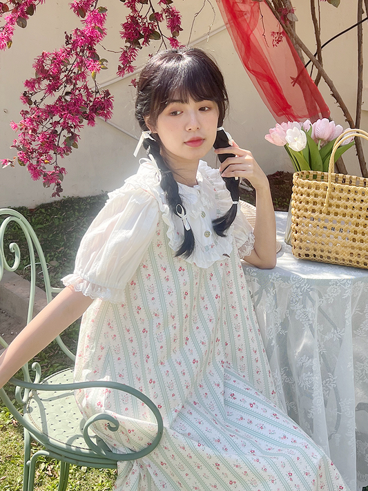 Mameya - Sweet French Puff-Sleeve Layered Dress