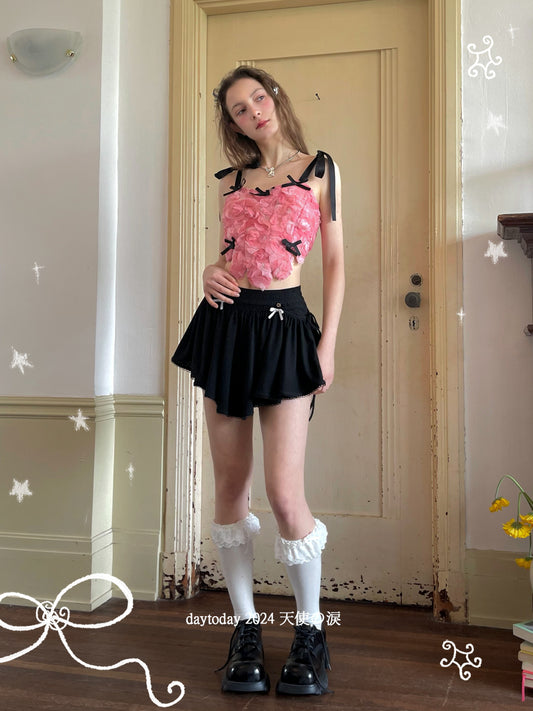 YZZI HE Cherry Top Print Dopamine Layered Pompom Skirt & Top Set
