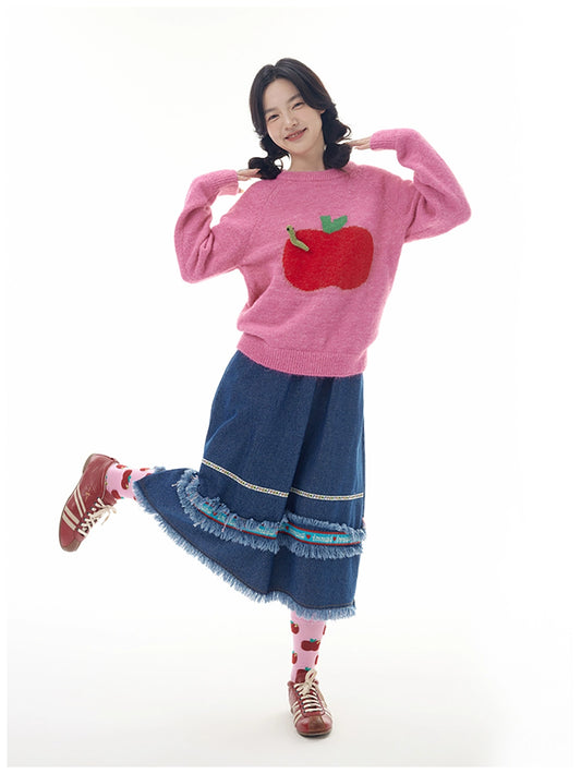 Harajuku Skirt Cartoon Skirt Two-Woven Straps Skirt Denim Skirt Tassels Skirt