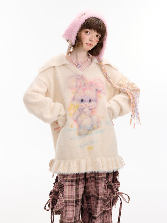 ziziFei - Kawaii V-Neck Bunny Knit Sweater