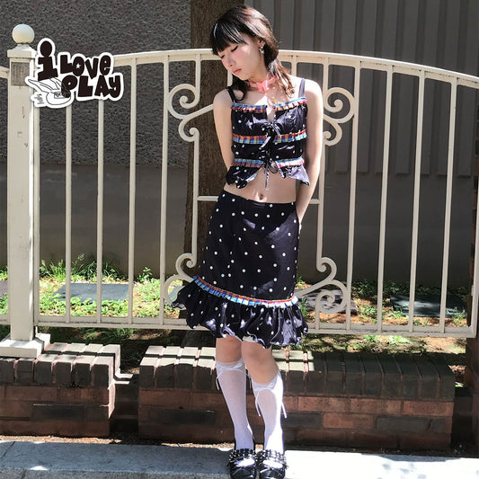 LovePlay – Girly Black Polka Dot Contrast Trim Cami Top & Skirt Set