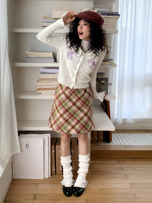 Chemical Girl - Girly School Style Plaid Wool A-Line Skirt