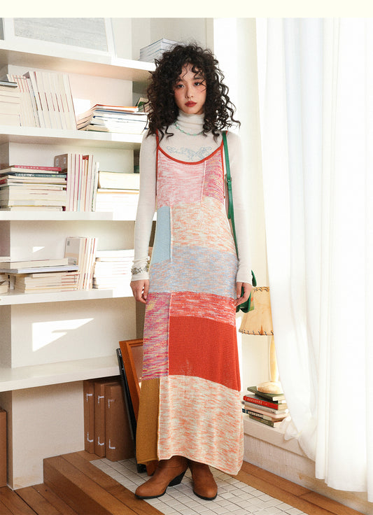 Chemical Girl - Girly Kawaii Color Block Knit Strap Dress