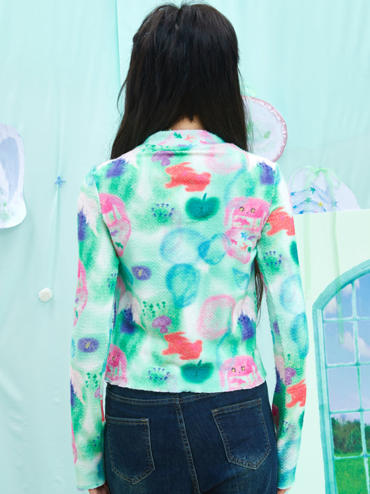 ziziFei - Y2K Soft Plush Butterfly Cardigan with Color Buttons