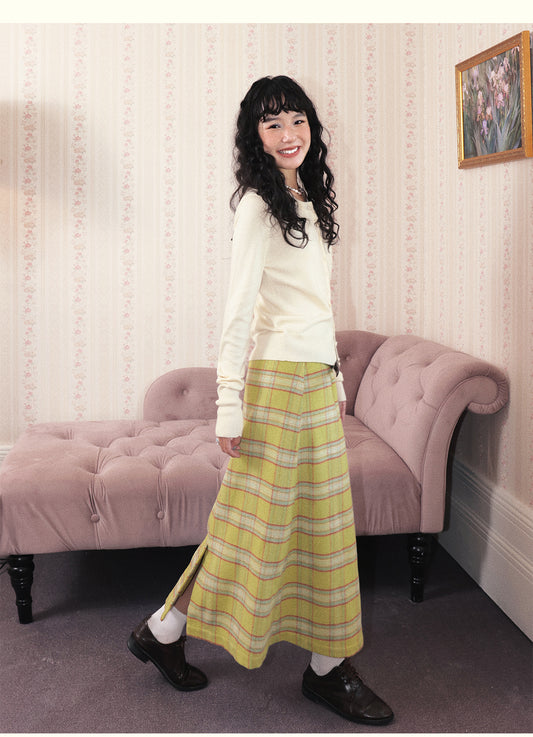 Chemical Girl - Vintage Plaid Wool Long Skirt Retro Girly