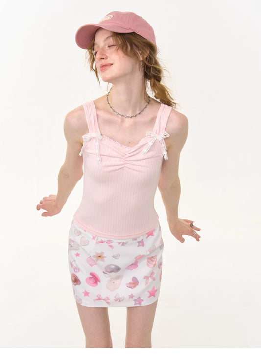 ziziFei - Girly Bow Lace Strappy Tank Top