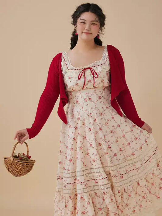 Plus Size Dress French Cotton Lace Print Corset Dress – Pomegranate Red | LaceMade