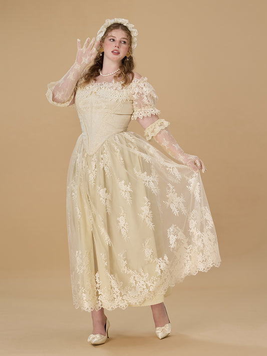 Plus Size Dress Vintage French Lace Corset Dress – Regal Court-Inspired Bridal Gown | LaceMade