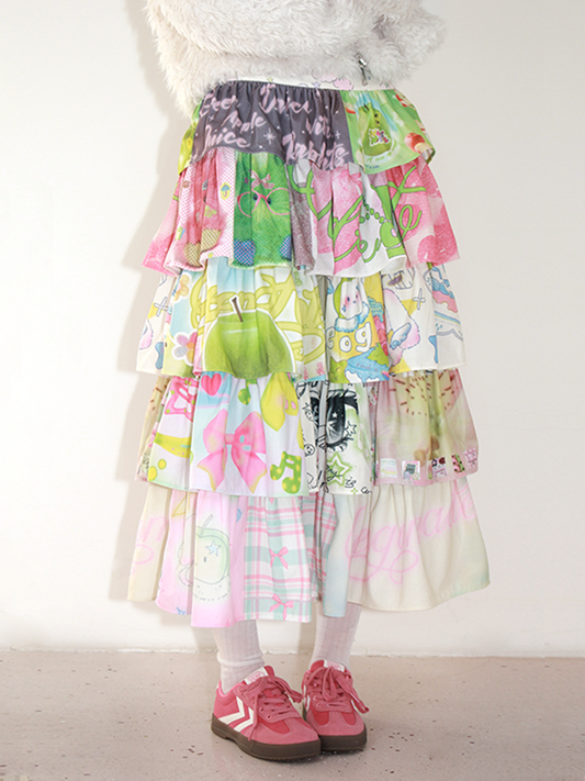 NeogoMade Bunny Cake Tiered Skirt | Harajuku Kawaii Dopamine Apple Skirt