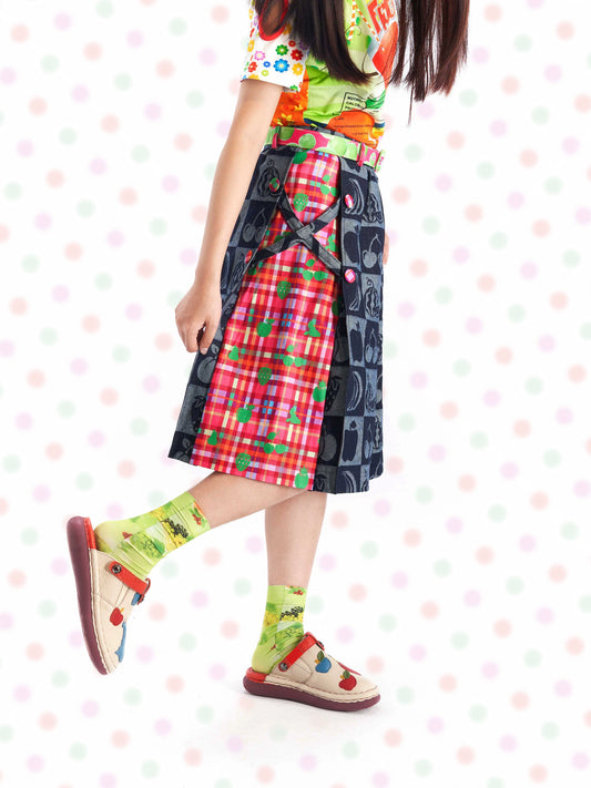 FRUITS Check‑Patchwork Skirt | Balloon Mini Skirt