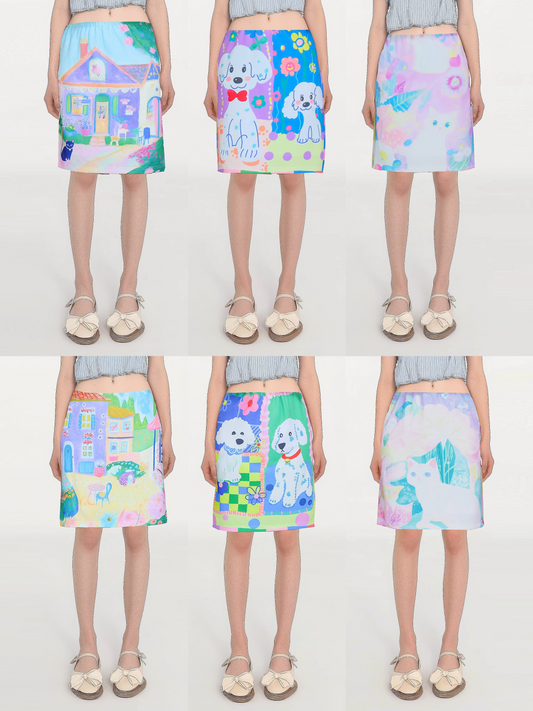 MeowMeow Bug - Decora Kei Double Print A-Line Skirt