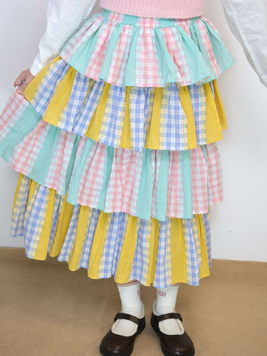 MeowMeow Bug – Kawaii Dopamine Cotton Layered Cake Skirt
